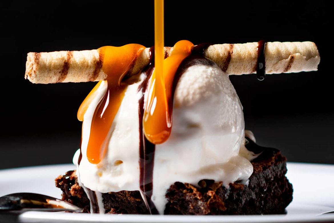 Chokladsåsen: Bryt chokladen i bitar. Häll grädde och socker i en kastrull och koka upp. Ta av från värmen, blanda i chokladen och rör tills den smält.