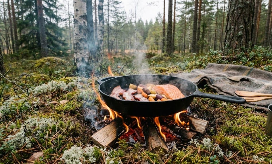 När man lagar mat ute i naturen tvingas man sänka tempot. Det går inte att stressa fram en perfekt glöd. Det är just detta som är tjusningen. Att sitta ner, värma sig och låta matlagningen bli en del av umgänget är minst lika viktigt som smaken på det som hamnar på tallriken. Oavsett om det är en enkel korvgrillning eller en mer avancerad gryta, så tillför elden en dimension som ingen ugn i världen kan efterlikna.